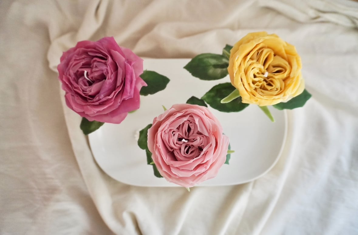 【ラナンキュラスのフラワーキャンドル|天然蜜蝋×ラベンダーローズの香り】