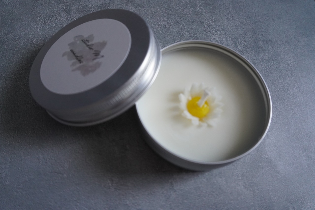 大豆ワックスにエッセンシャルオイルで香りづけをしたキャンドルです。アルミ缶の蓋を開けると、ふわっと優しい香りが広がります。