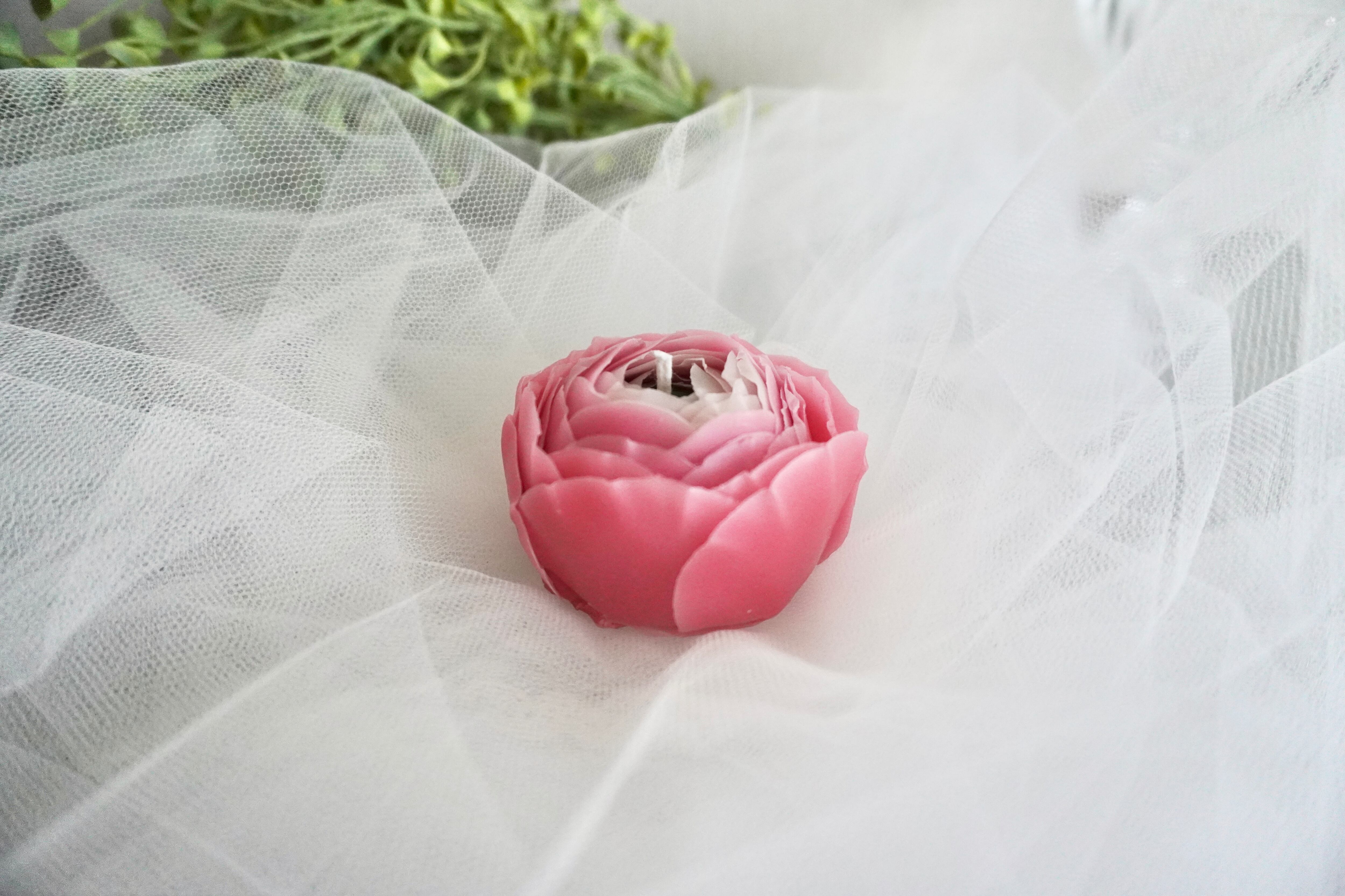 【ラナンキュラスのフラワーキャンドル|天然蜜蝋×ラベンダーローズの香り】